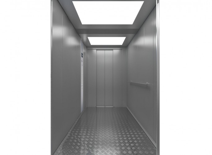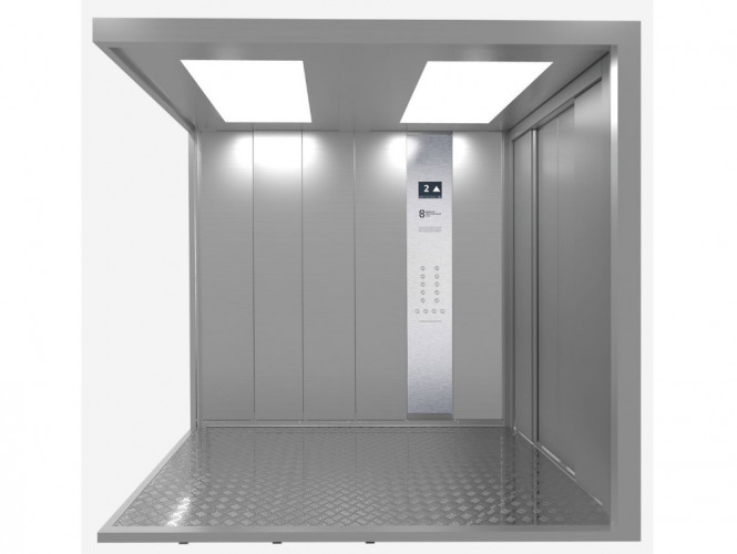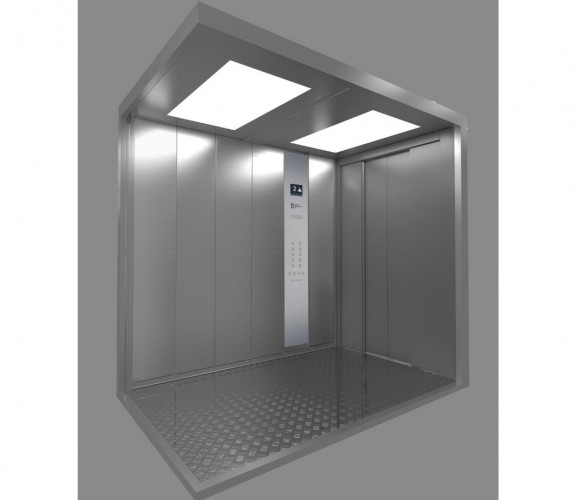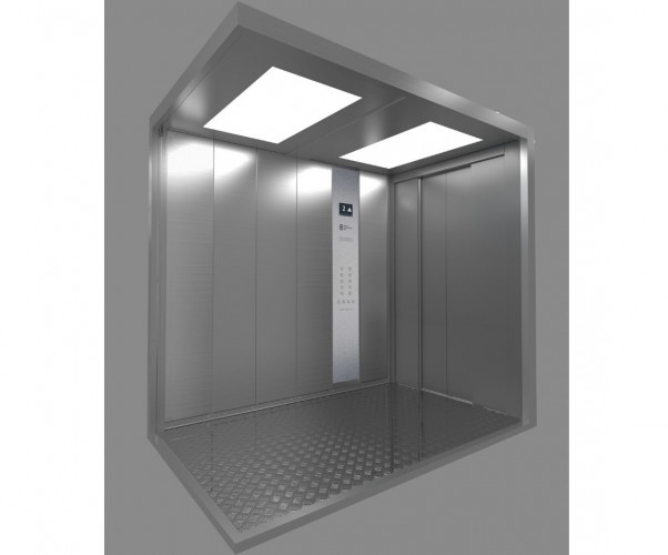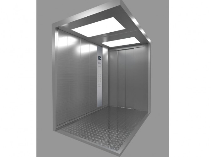 - Материалы: Все ключевые элементы, такие как щиты, потолок, двери кабины и шахты, выполнены из нержавеющей стали для повышенной прочности и долговечности.